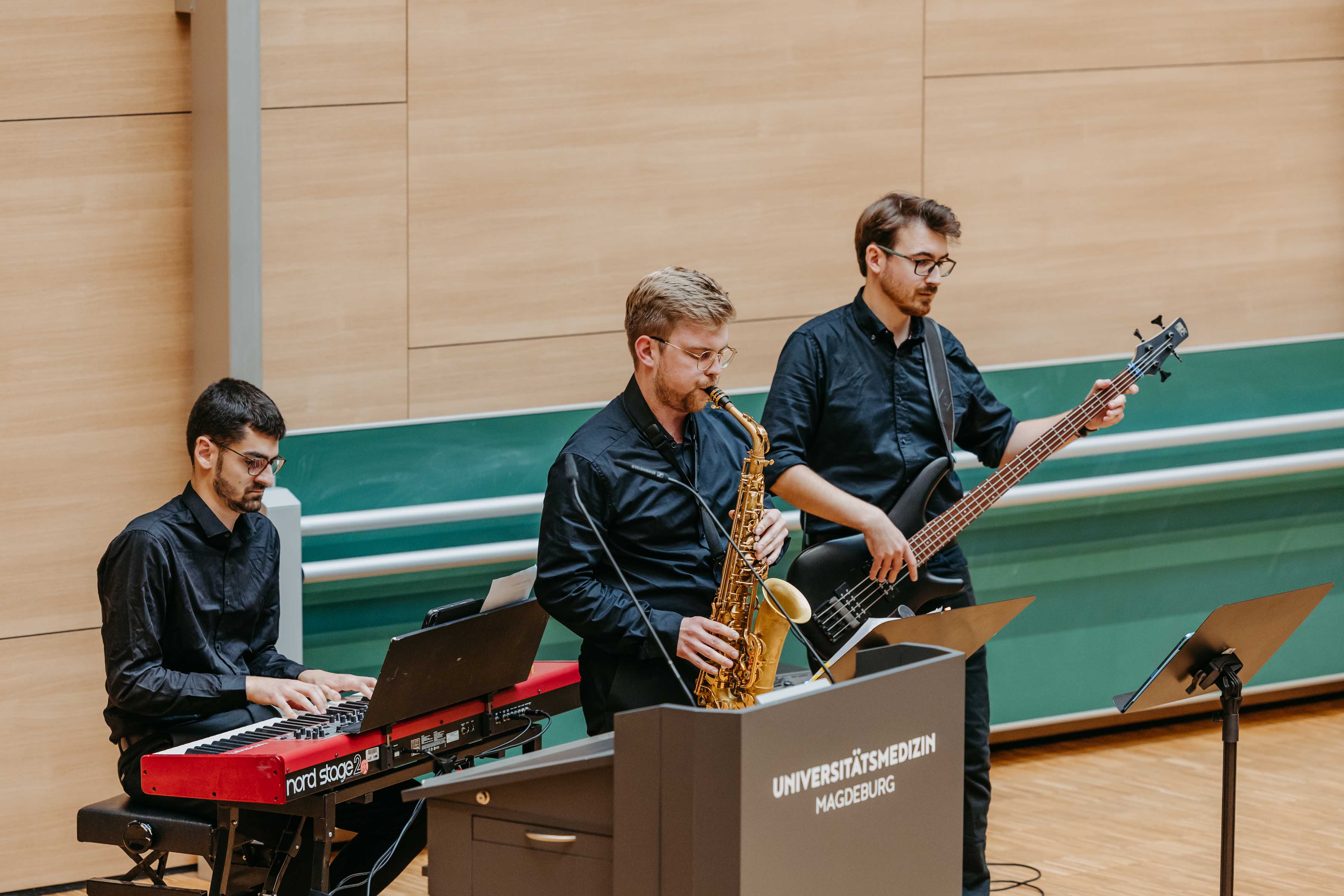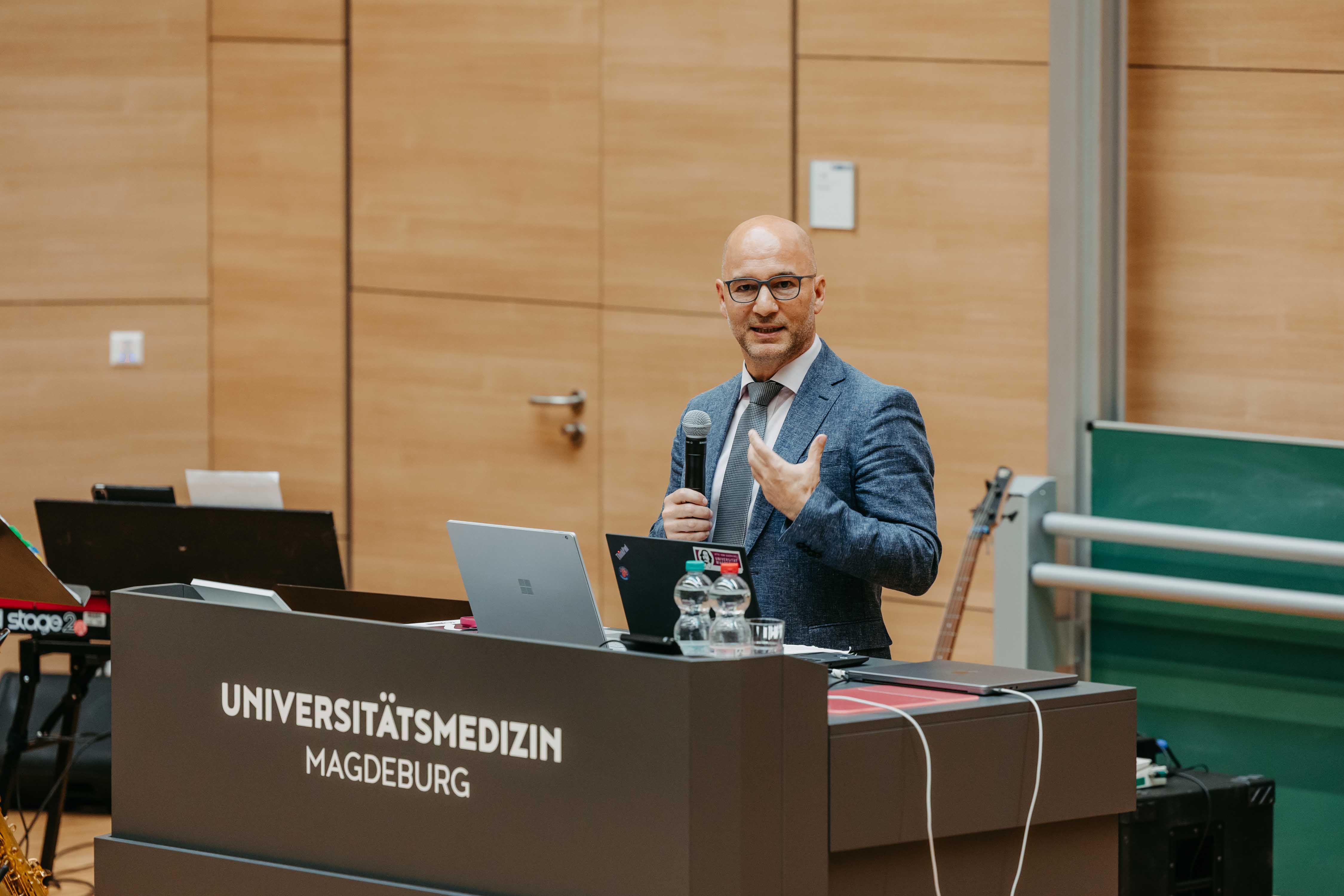 This year, the graduating classes of 1965 and 1975 from the Medical Academy were honored with the Golden and Diamond State Examinations by Vice Dean Prof. Dr. Anne Albrecht at a ceremony held on the medical campus. The keynote address was given this year by Prof. Dr. med. Emrah Düzel.
